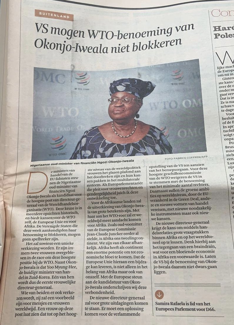 In oktober vroeg ik al aandacht voor het benoemen van Okonjo-Iweala als nieuwe DG in @FD_Nieuws 👇🏽