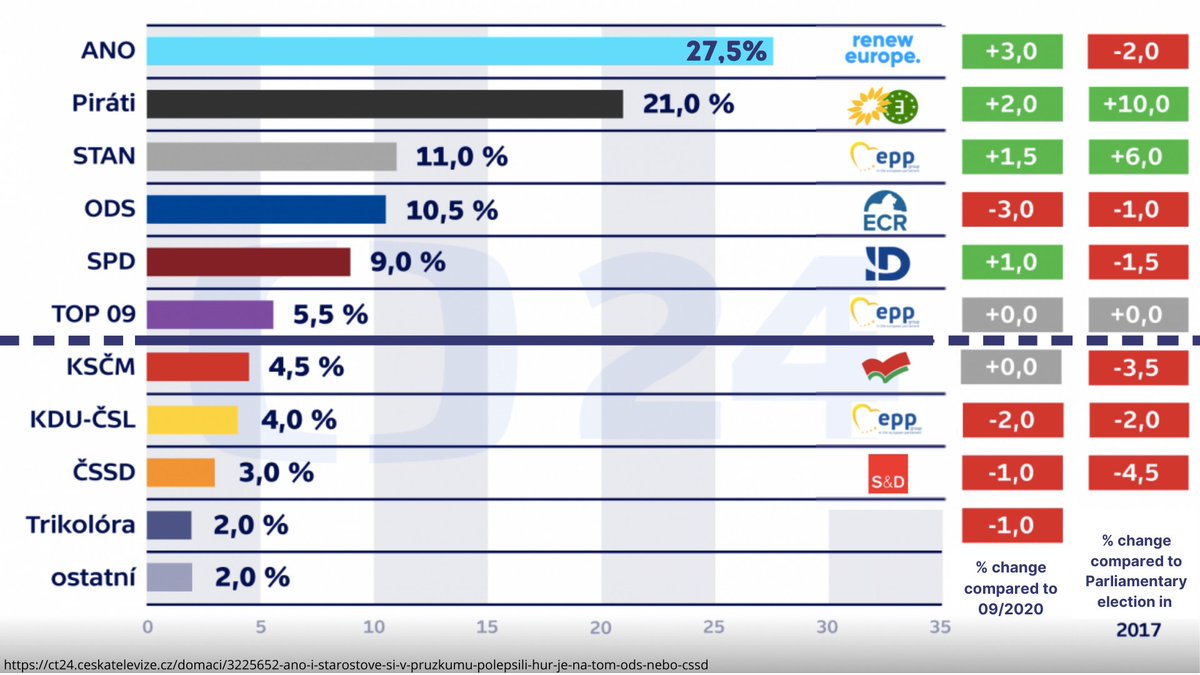 November's poll for national elections puts @PiratskaStrana (@GreensEFA) with 21% at the 2nd place! It's great to see that citizens appreciate our work. It gives us hope that if we carry on working hard, we can beat ANO (@RenewEurope) of PM Babiš in next year's elections!