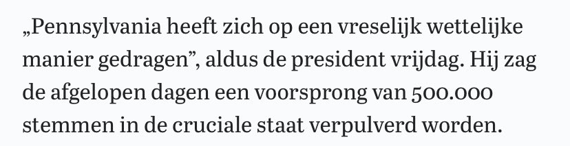 Volgens de @telegraaf heeft volgens @realDonaldTrump Pennsylvania zich op een ‘vreselijk wettelijke manier gedragen’
