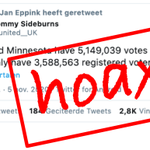 Minnesota heeft zo'n 3,5 mln geregistreerde kiezers, en 3,2 miljoen stemmen. Dus geen 5 miljoen stemmen. Wat zou de bron zijn van 'Tommy Sideburns', hier gepromoot door @djeppink (Europarlement, FvD)? Check: electionresults.sos.state.mn.us/Results/Index?…