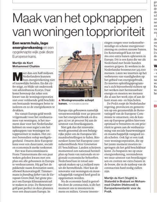 Kabinet moet plannen renovation wave van @TimmermansEU omarmen. Opiniestuk van @MartijnVdeK en mijzelf in het ED.