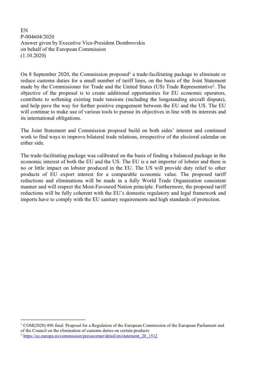 +1Debate in @EP_Trade on the EU-US mini deal. I have asked these questions to @EU_Commission. We should be wary of unintended impact on #USElections. The Commission apparently does not take this into account, but you can't close your eyes for the unfortunate timing of this deal.