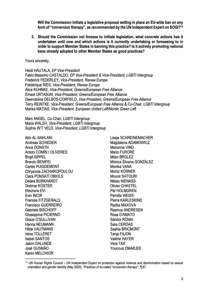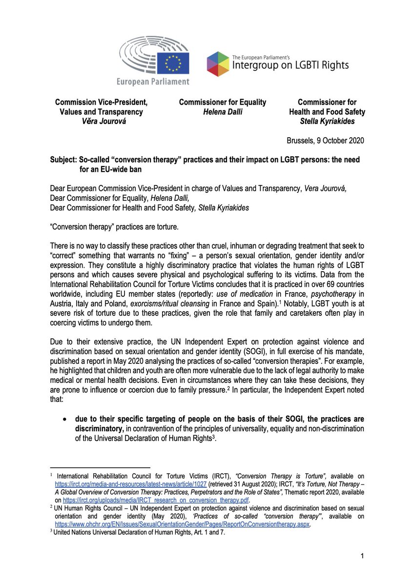De seksuele geaardheid van mensen met therapie proberen te veranderen is schandalig! Ik stuurde daarom met 61 collega’s een brief aan de @EU_Commission om hen op te roepen een verbod in te stellen binnen de EU! 🏳️🌈 @LGBTIintergroup