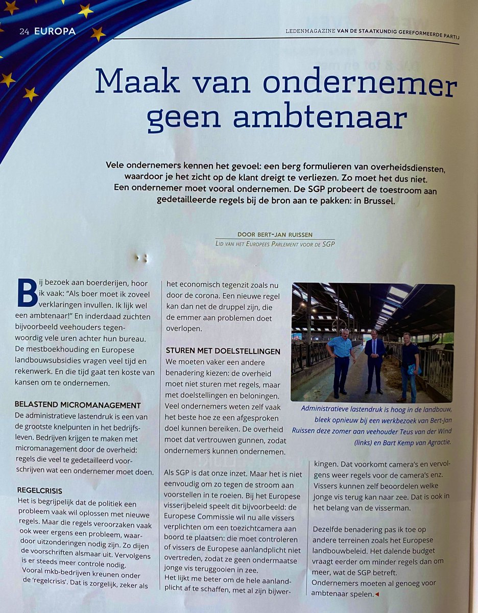 Mijn bijdrage aan SGP-ledenmagazine De Banier deze maand: ‘Maak van ondernemer geen ambtenaar’!