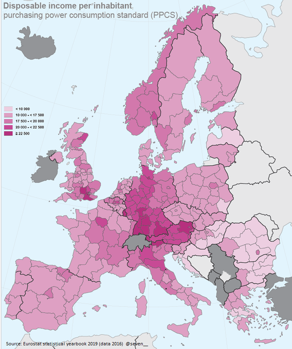 Beschikbaar inkomen per inwoner in Nederland lager dan in Duitsland, Vlaanderen en Noord-Italië