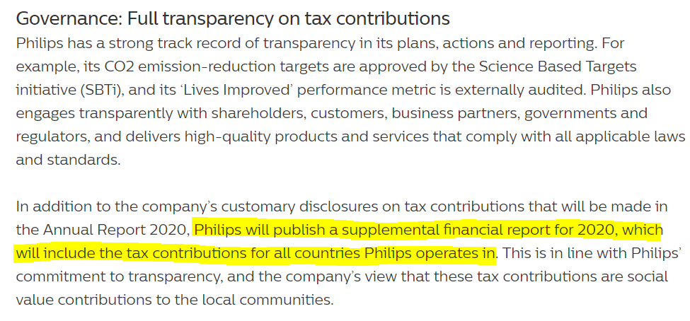 After Shell and Vodafone now also #Philips will publish publicly its country-by-country reporting data.