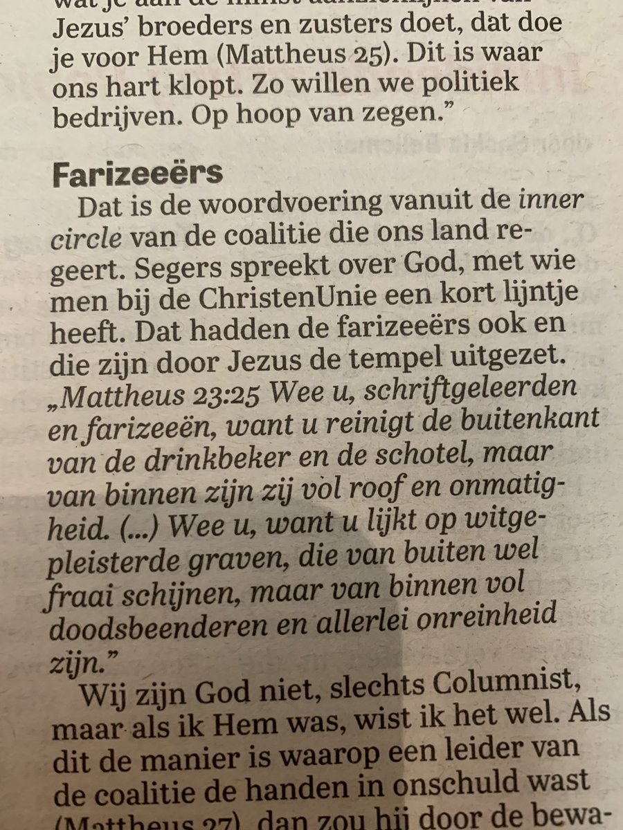 @RPlasterk houdt de @christenunie een bijbeltekst voor. Zijn CU’ers de moderne Farizeeers?