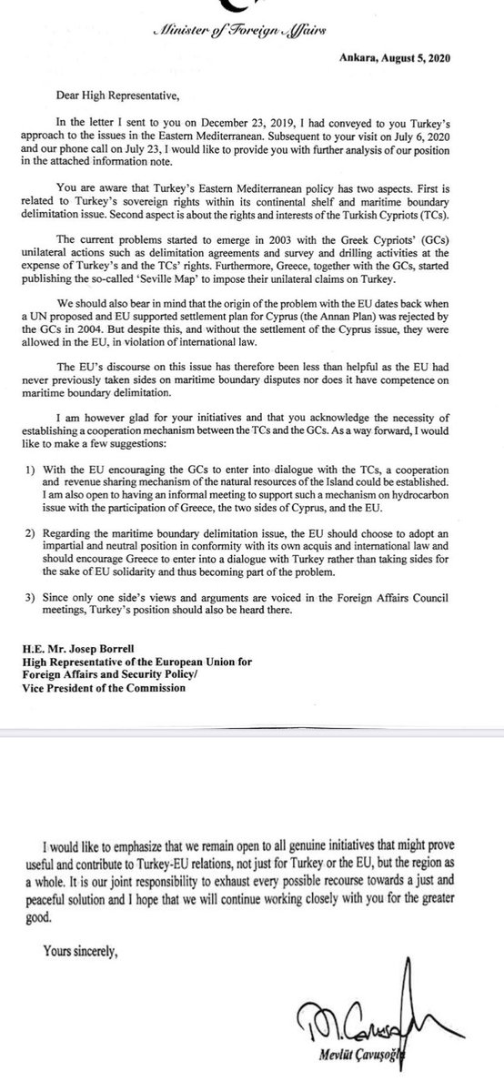 +1For EastMed aficionados, ahead of tomorrow’s Foreign Affairs Council, letters sent by the Greek and Turkish foreign ministers to @JosepBorrellF laying out the two different positions
