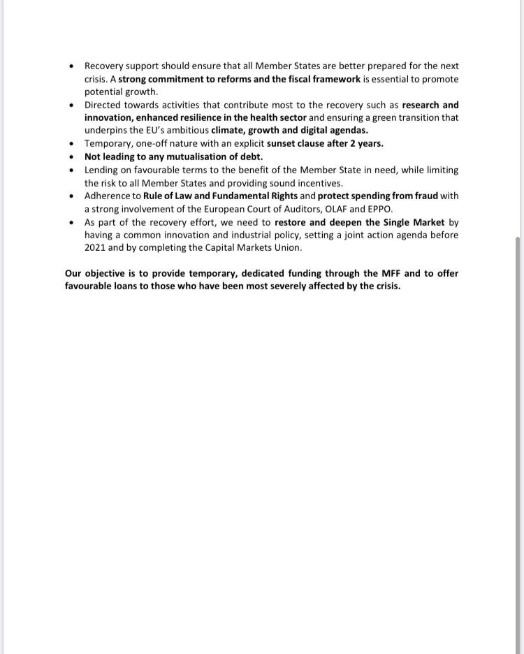+1Het Nederlandse (e.a) ‘tegenvoorstel’ voor Europese solidariteit in Coronatijden. Rutte kondigde dit al aan na de ministerraad vrijdag..