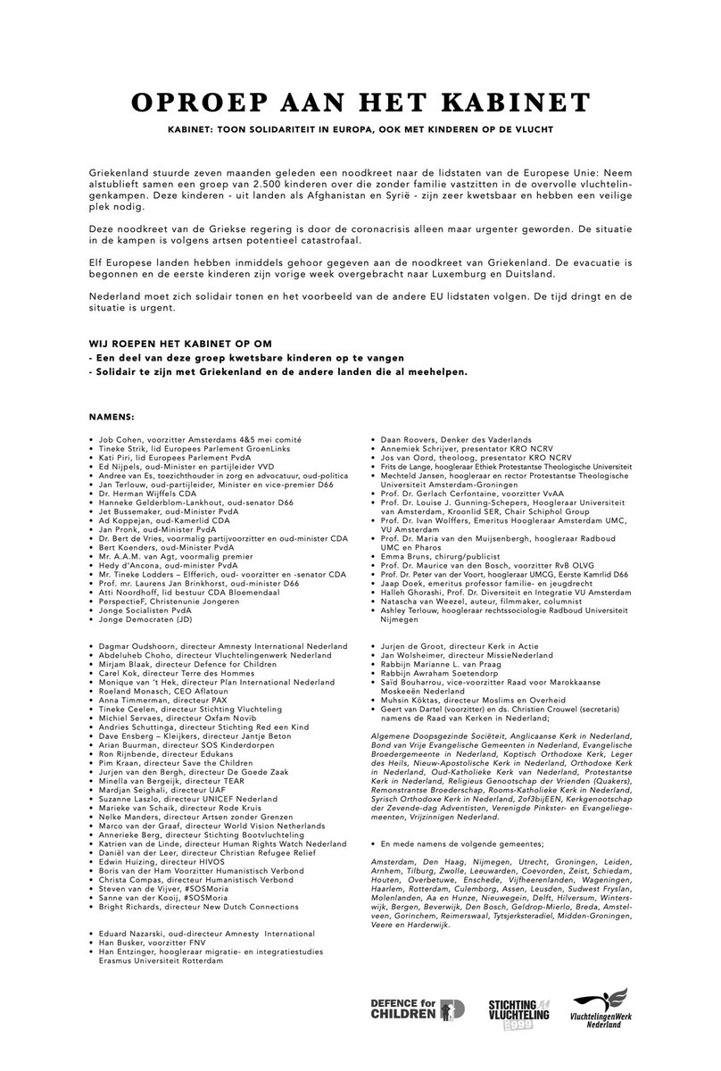 Vandaag roep ik samen met vele anderen het kabinet op een groep alleenstaande kwetsbare kinderen uit de Griekse vluchtelingenkampen op te vangen.