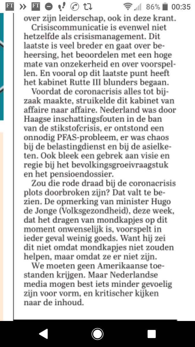 Voor de dagbladen zijn de Corona-wittebroodsweken voor#RutteDrie nu dan toch echt voorbij. Getuige ook dit relaas van hoofdredacteur Paul Jansen van @telegraaf vandaag in zijn krant.