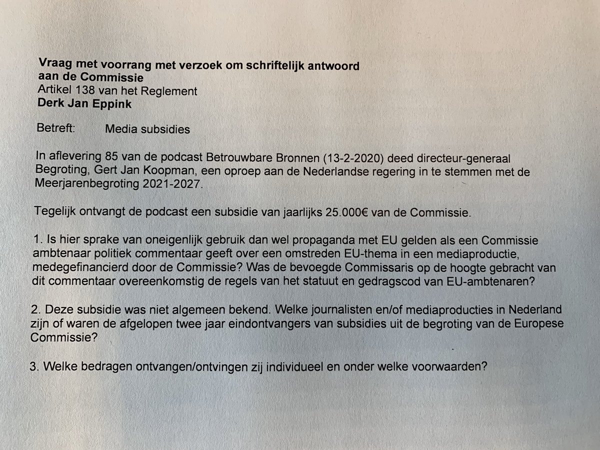 Naar aanleiding van de berichtgeving over mogelijke verwevenheid tussen journalistiek en EU-subsidies stelde ik de volgende schriftelijke vragen met voorrang aan de Europese Commissie.