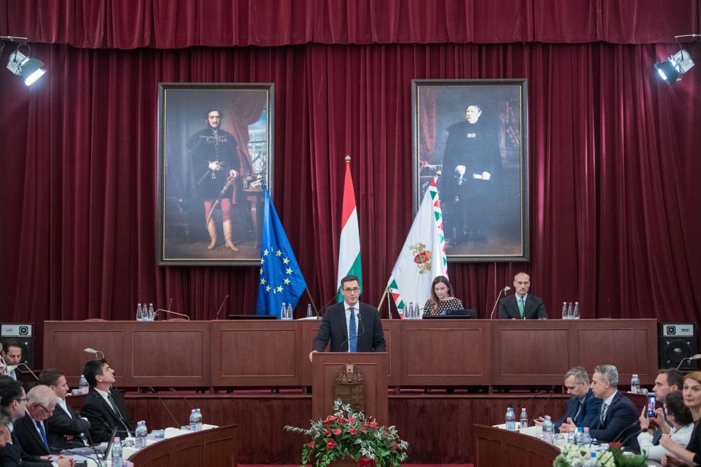 Newly elected opposition mayor of #Budapest put the #EU flag back where it belongs. It was painfully missing during Fideszโs tenure. Well done