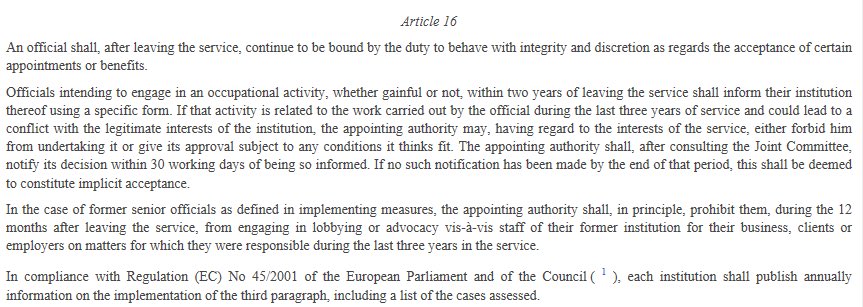 EU rules exist for a reason: promote EU transparency + credibility and prevent excessive lobbying influence. This is much needed. See for example my article from 2 weeks ago on cynical lobbying action to postpone a key sustainable finance initiative. euractiv.com/section/econom…