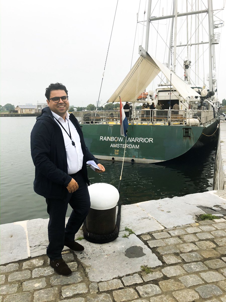 In de elektrische bus van @GreenpeaceEU onderweg naar Antwerpen voor een rondleiding op de Rainbow Warrior en een panelgesprek met o.a @JPvanYpersele.