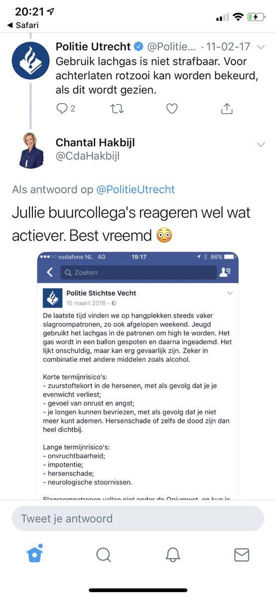 +1Neem aan dat @PolitieUtrecht al lang is teruggekomen van hun reactie op #lachgas uit 2017? nog steeds elk weekend in deze omgeving raak. #2jaarlater #glazenbol #aanpakken