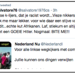 Gisteren verspreidde fractievertegenwoordiger van de Haagse PVV @henkbres een oproep tot genocide. Hij retweet iemand die hoopt dat 'nikkers' en 'kut Afrikanen' worden uitgeroeid door een 'GOEIE Hitler'. Kijk even mee hoe zo'n bericht de 15,4K volgers van Bres bereikt. 1/5