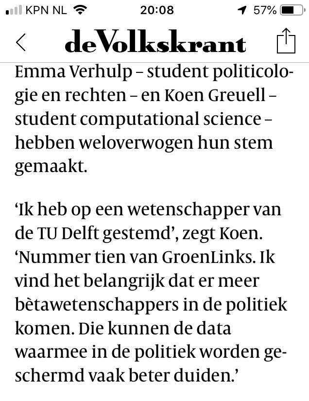 @KoenGreuell hartelijk bedankt voor jouw vertrouwen! #sprekjeuit #voorverandering #groenlinks #claudiahofemann #Volkskrant #TUDelft