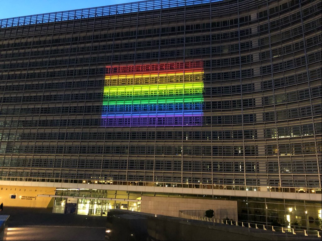 Our headquarters -Berlaymont building- lit up in the colours of the rainbow flag to support International Day against Homophobia, Transphobia and Biphobia.