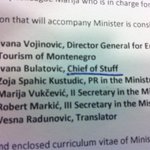 Te grappig. Lijstje van mensen die vlg wk de Montenegrijnse milieuminister vergezellen, één met bijzondere functie: