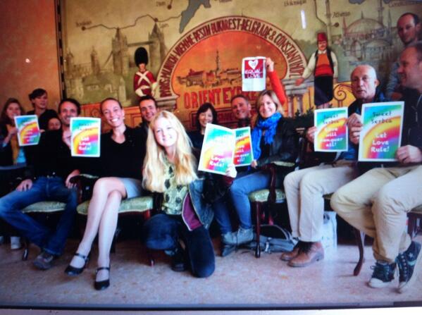 Onze Belgrado Groep mini-flashmob in Hotel Balkan. Mooie foto van Martin Pluimers!