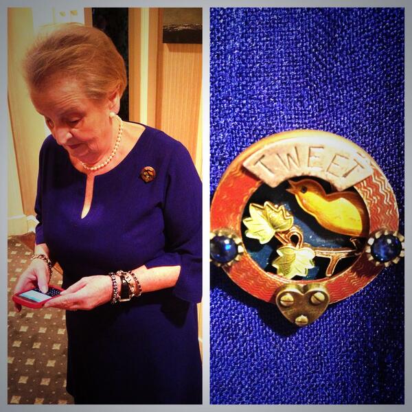 Welcome & we'll meet Thursday! “@madeleine: 1st of 3 female SecState's -last to join Twitter. Better late than never ”