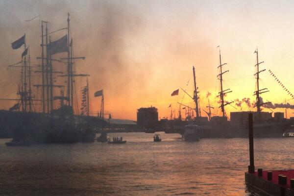 Nog een laatste kiekje, van de bootaankomst bij het Muziekgebouw. Leek net een middeleeuwse zeeslag. Prachtig.