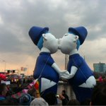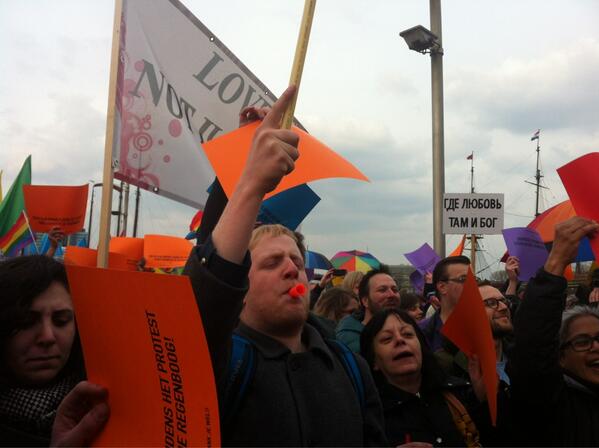 Aangekomen bij protest tegen Putin. Geweldig regenboogfeest!