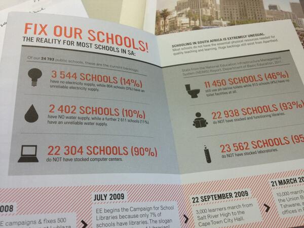 93% vd scholen heeft geen bibliotheek. 14% heeft geen elektriciteit. 4% heeft geen wc! #zuidafrika
