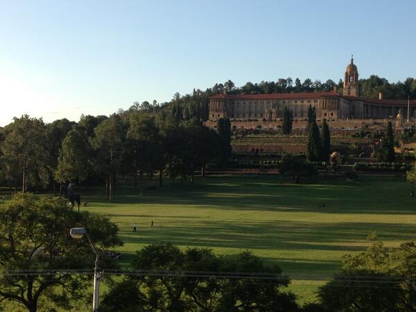 Ik ben nu hier. Union buildings. Voor briefing bij presidential dep for performance monitoring and evaluation.