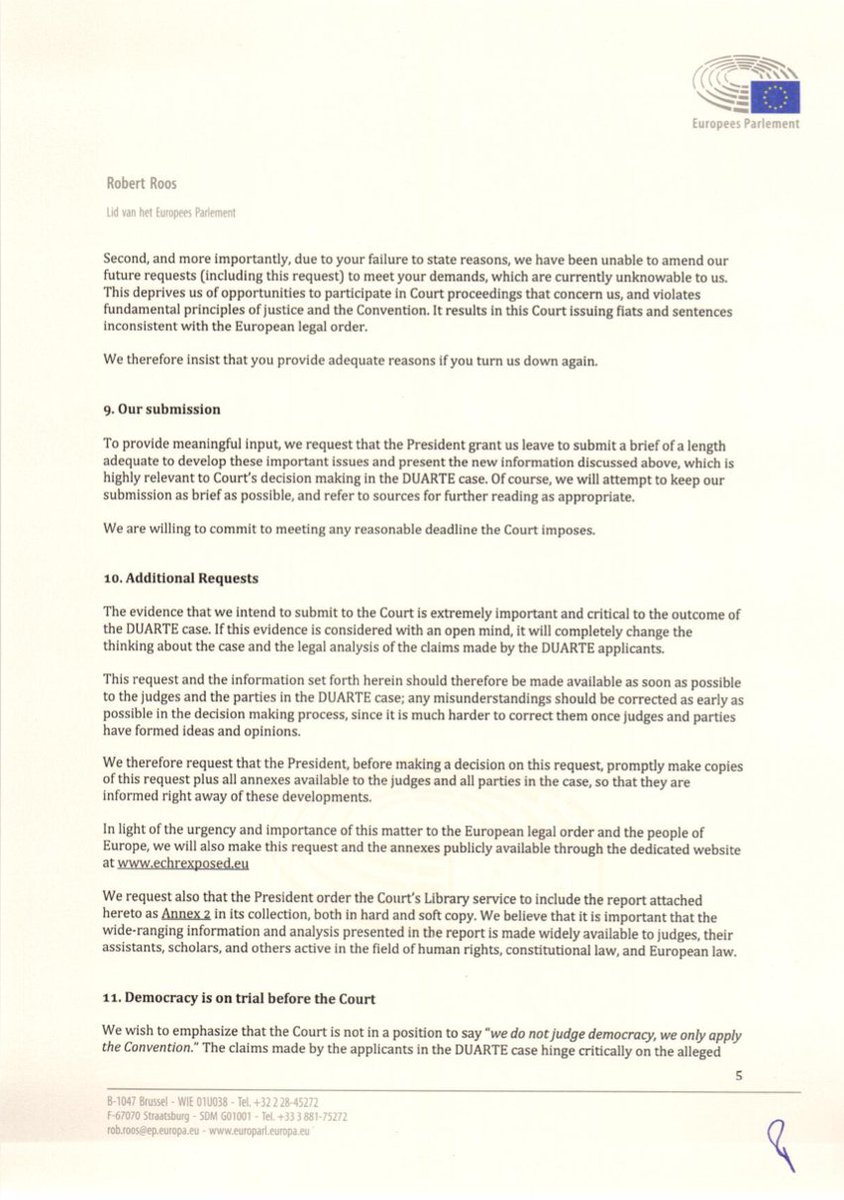 4/ I, a Member of the European Parliament, representative of the people of Europe, am entitled to equal treatment, and should be granted leave to intervene. Moreover, unlike the Commission, I will base my intervention on new information that was not available before @ECHR_CEDH.