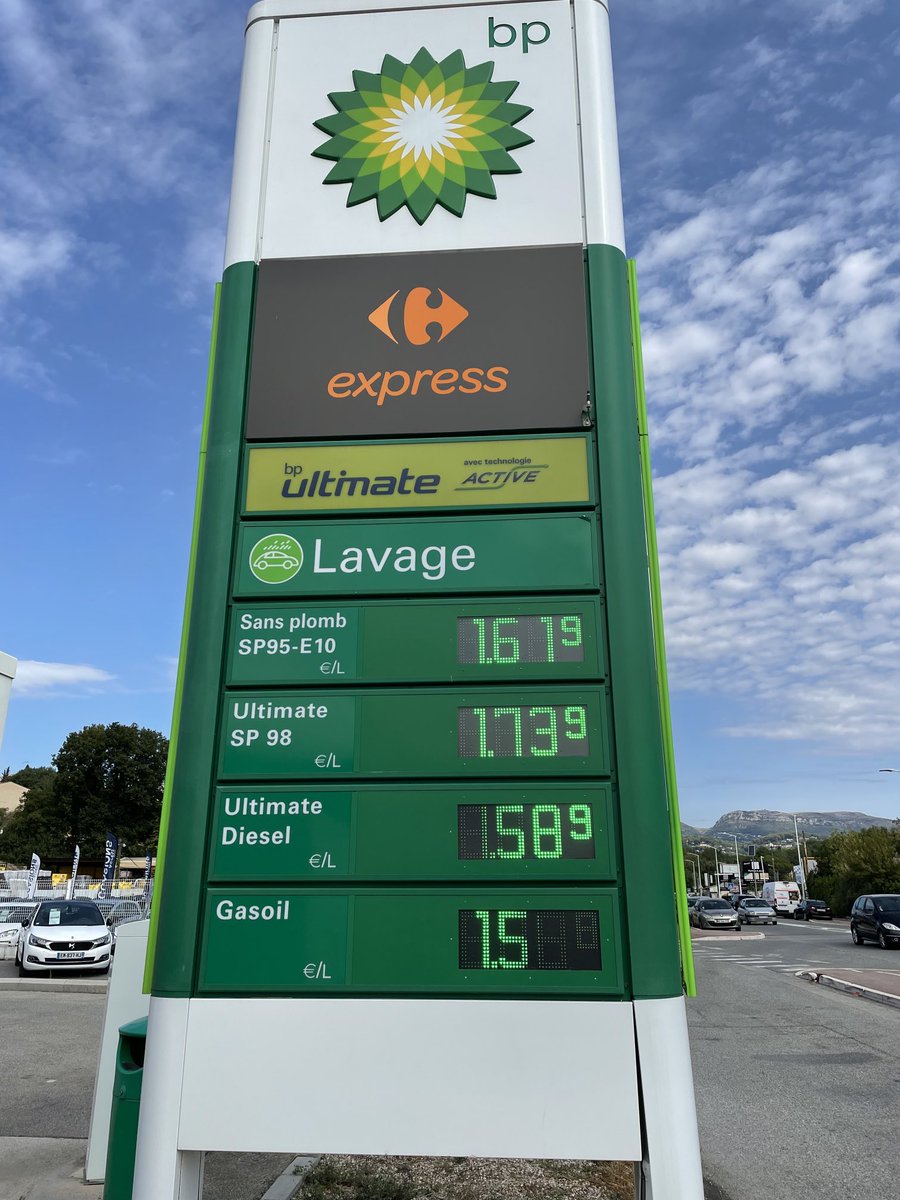 Dit zijn de tarieven aan de pomp in Frankrijk. Uitgaande van 30.000 km per jaar betaalt men in “ La douche France” € 500/j minder belasting/ accijns!!