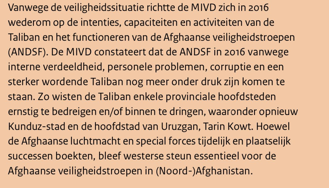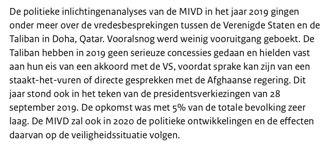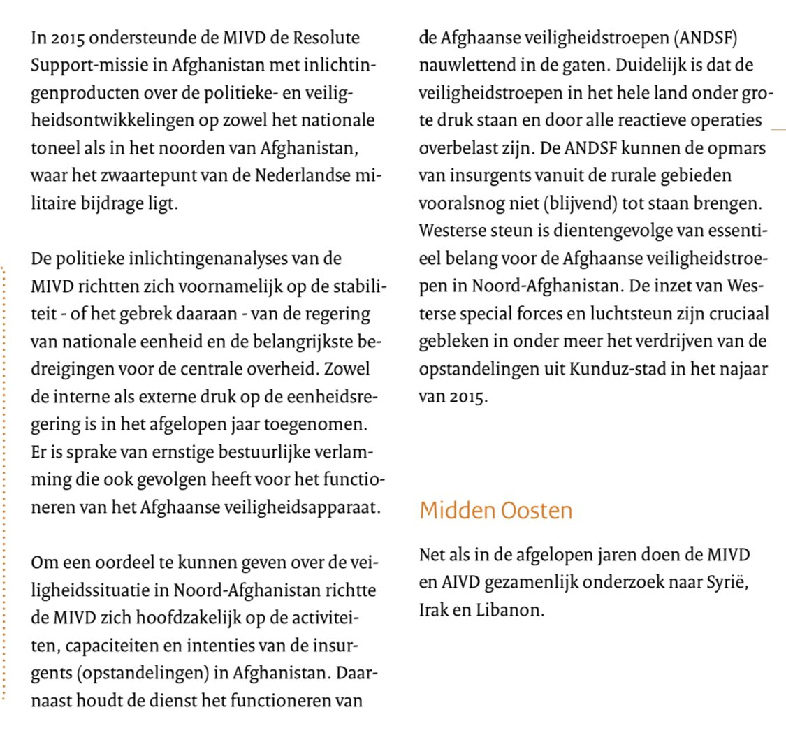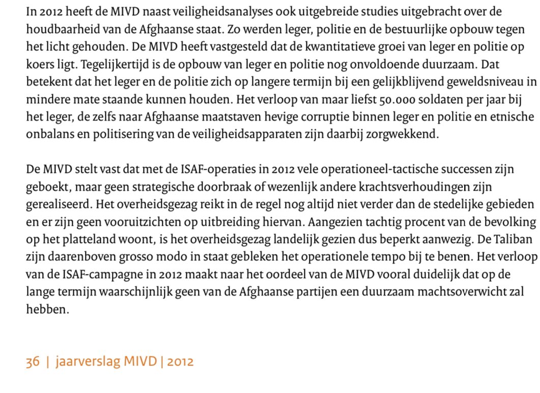 Voor wie het als een verrassing komt dat de Taliban te sterk en de Afghaanse veiligheidstroepen te zwak bleken, leze er hieronder nog eens de publieke Jaarverslagen van de militaire inlichtingendienst MIVD op na (2010-2020):