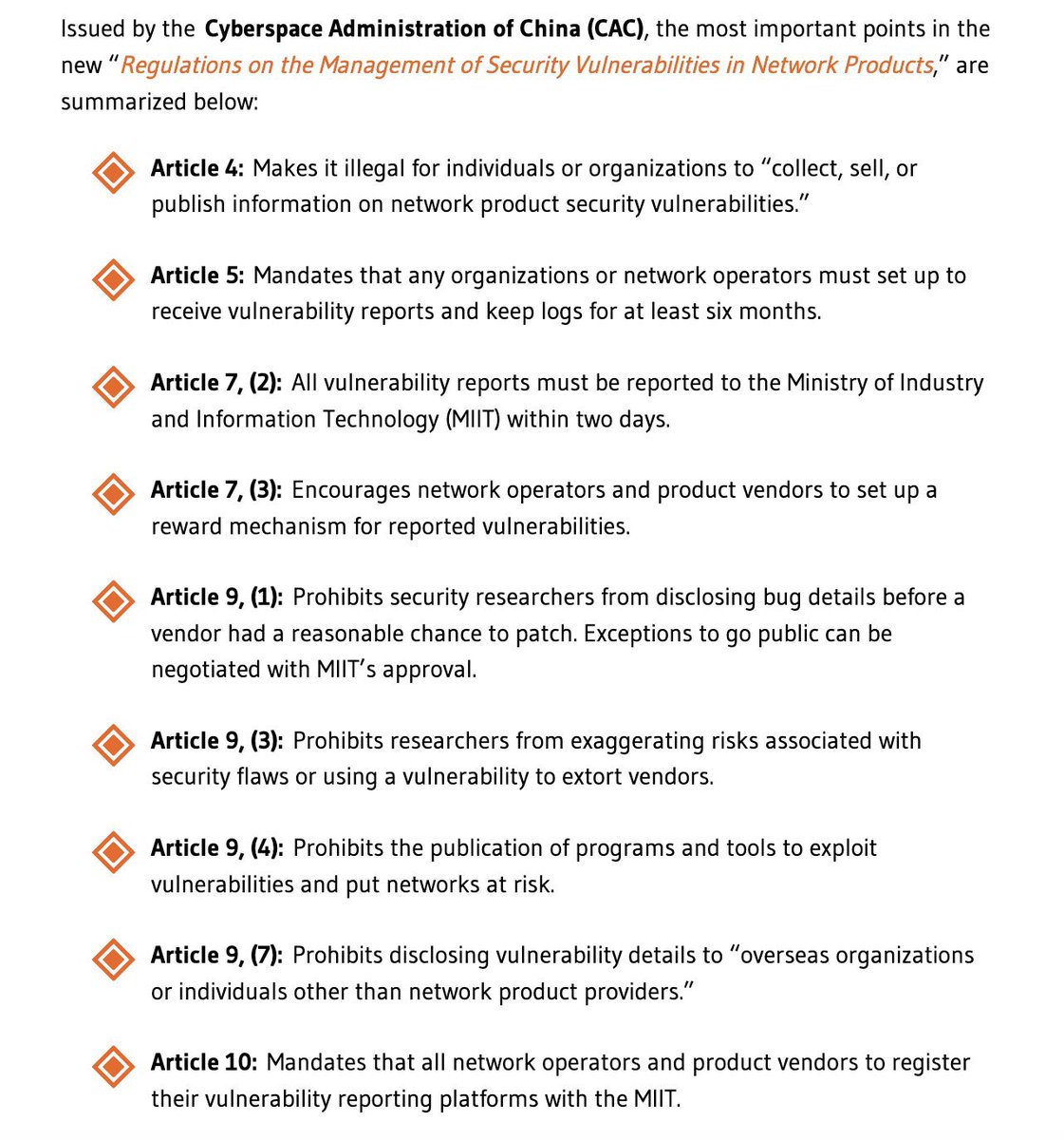What a disaster: China forces any discovered software or hardware vulnerability to be disclosed to its intelligence agencies first. It means China gets/has the ability to penetrate nearly every supply chain, on an unprecedented scale. This is a new Big Cyber Issue (1)