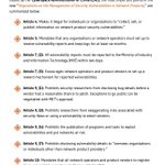 - Researchers must alert the gov't to any 0days, which must then approve any public disclosure-Pre-disclosure, no overseas info sharing except w/the manufacturer