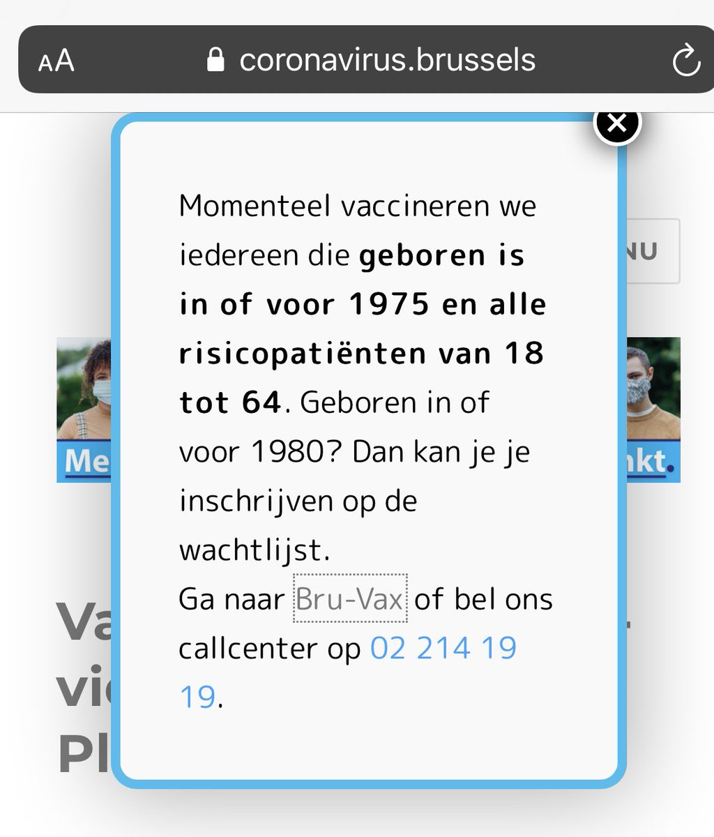 @CatherineDVries @ChrisAalberts In Brussel is men nu gestart met het vaccineren van mensen geboren in 1975!!!