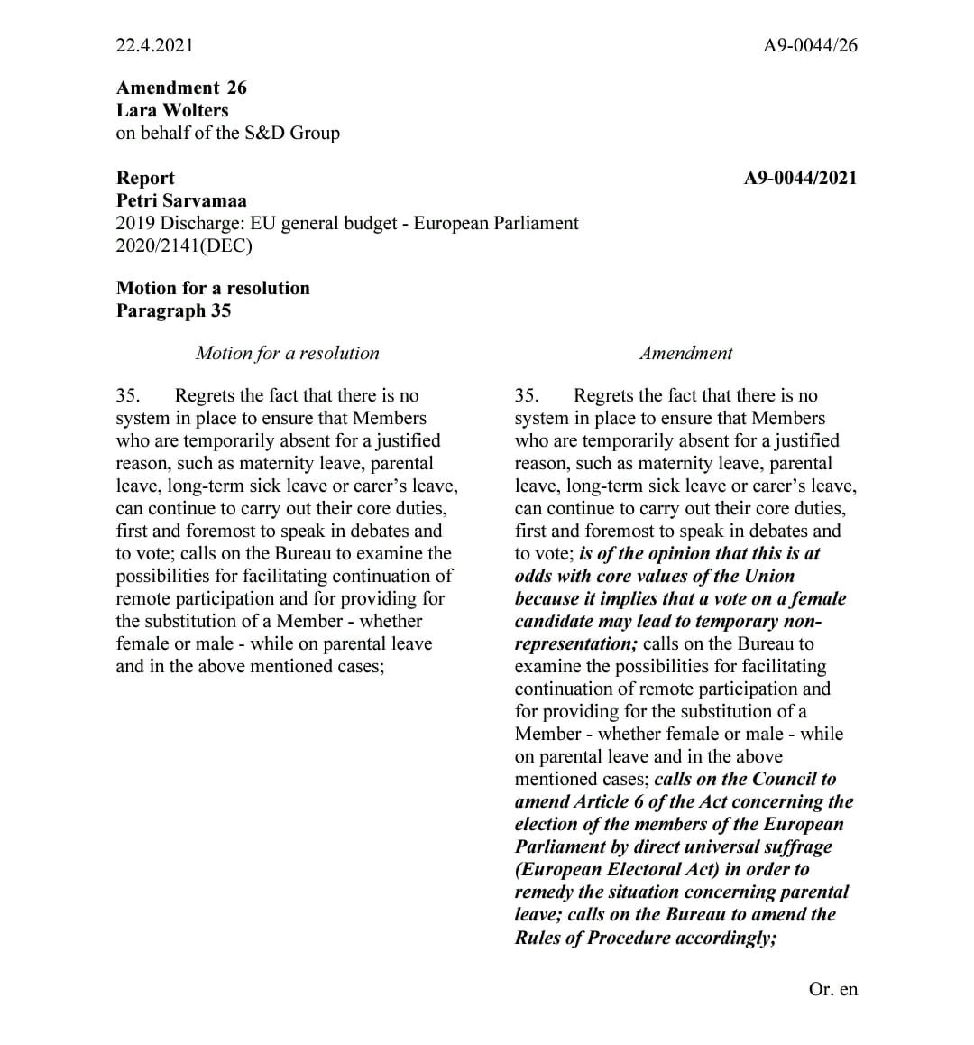 Het 🇪🇺 Parlement steunt mijn oproep tot een eerlijke verlofregeling voor parlementariërs. Zo blijven kiezers vertegenwoordigd als een parlementslid op zwangerschapsverlof is!