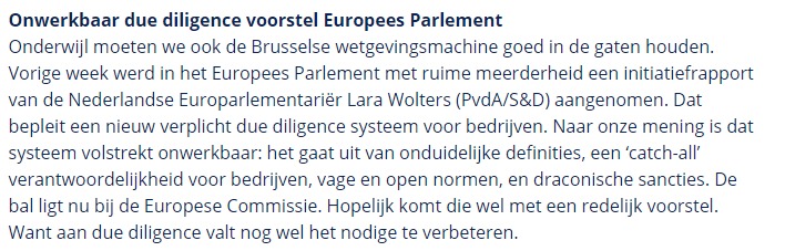 Ook dit is #EUolifant: in NL pleit @VNONCW voor Europese regels; in Brussel worden die gedwarsboomd. Regels voor verantwoord zakendoen gaan er komen. "Onwerkbaar en draconisch"? Daar dacht een ruime meerderheid van het 🇪🇺 Parlement toch echt anders over.