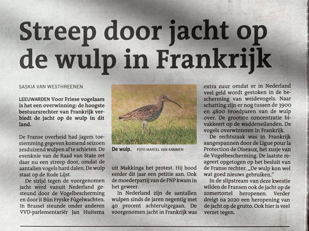 Goed nieuws, overwinterende wulp mag in Frankrijk niet meer bejaagd worden. In Nederland wordt veel geld en energie gestoken in de bescherming van de weidevogel.