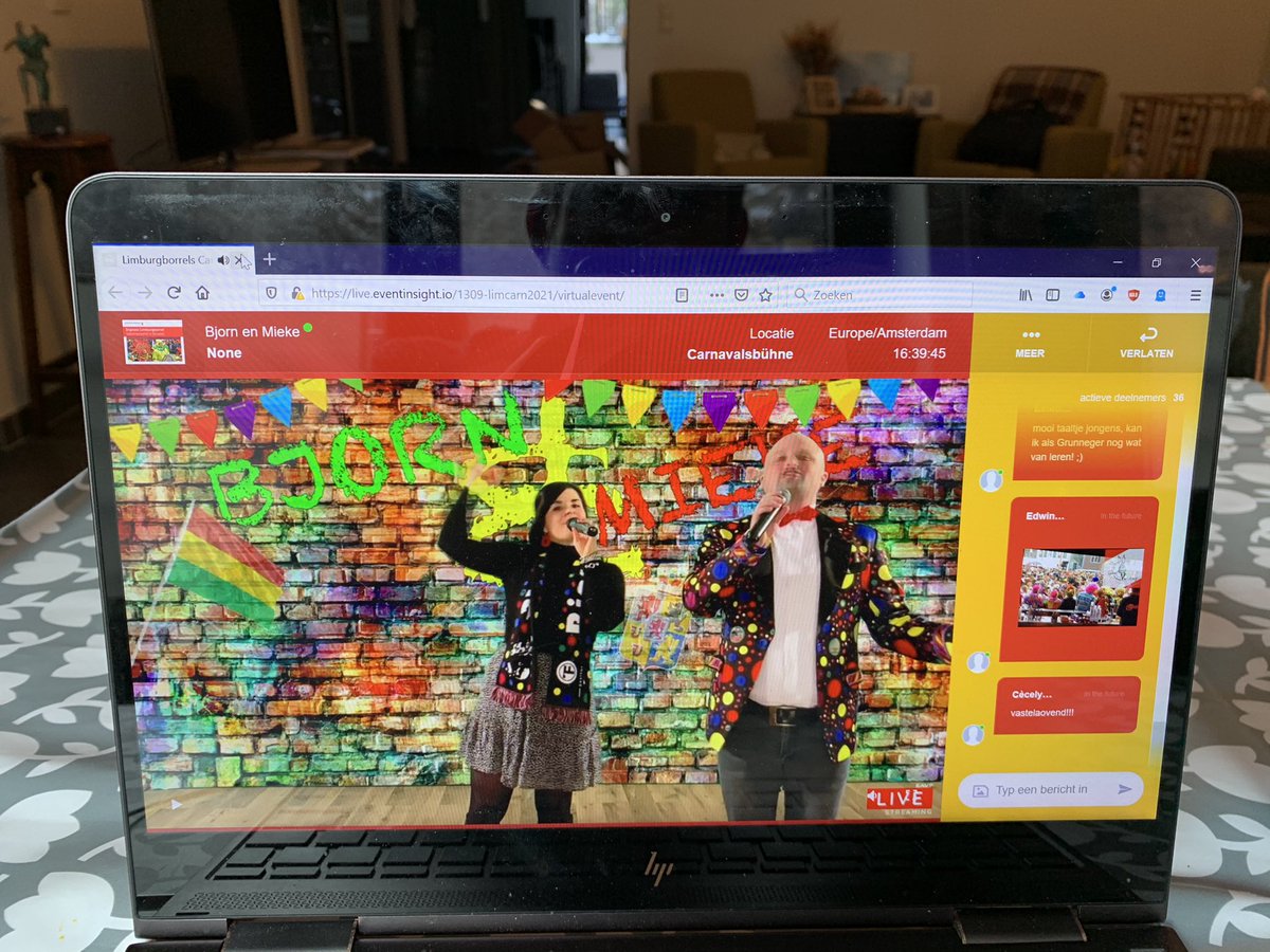 Geweldige digitale carnavalsborrel van de provincie @limburg! Nu live achter de laptop sjoenkelen met Bjorn & Mieke ❤️💛💚
