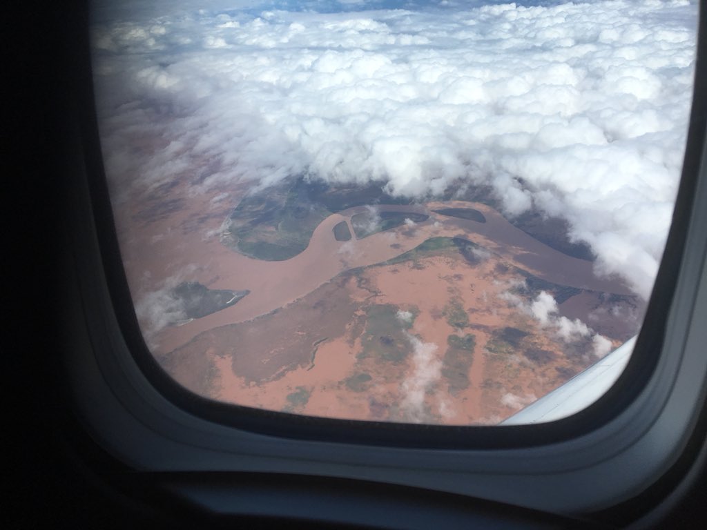 This was the picture from above as we were landing in Beira. Land submerged in muddy waters, as far as the eye can see. Can only imagine what happened to the villagers living here. #CycloneIdia