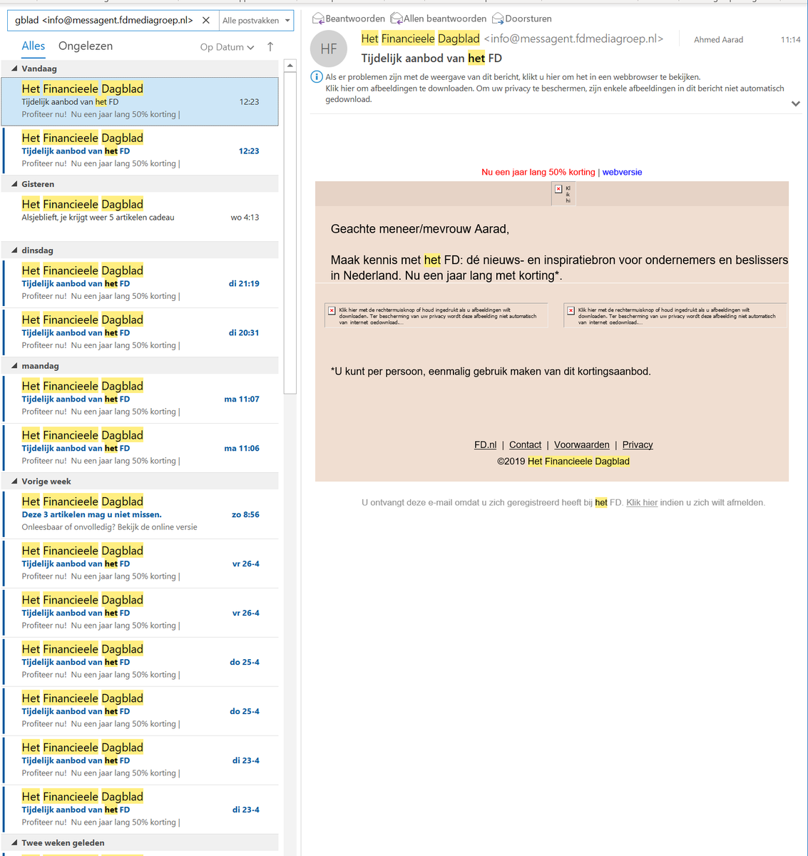 Mijn associatie met het FD is nu: Spam en zeker geen nieuws.