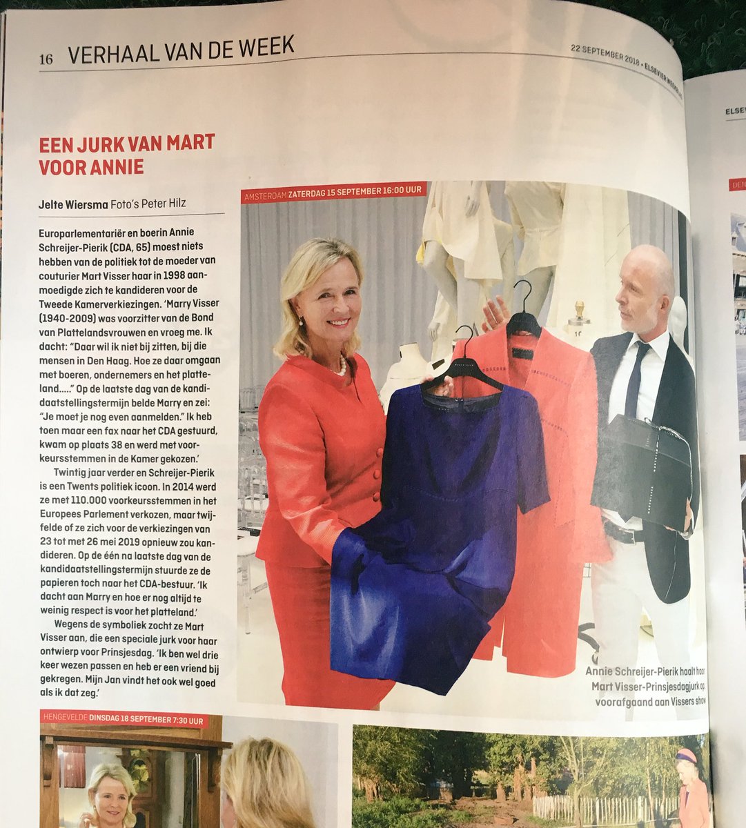 +1Mooie fotoreportage in @Else4Weekblad vandaag over de jurk die @MartVisserNL voor me maakte voor #Prinsjesdag als eerbetoon aan zijn moeder (mijn inspiratiebron, oud-Kamerlid Marry Visser van CDA).