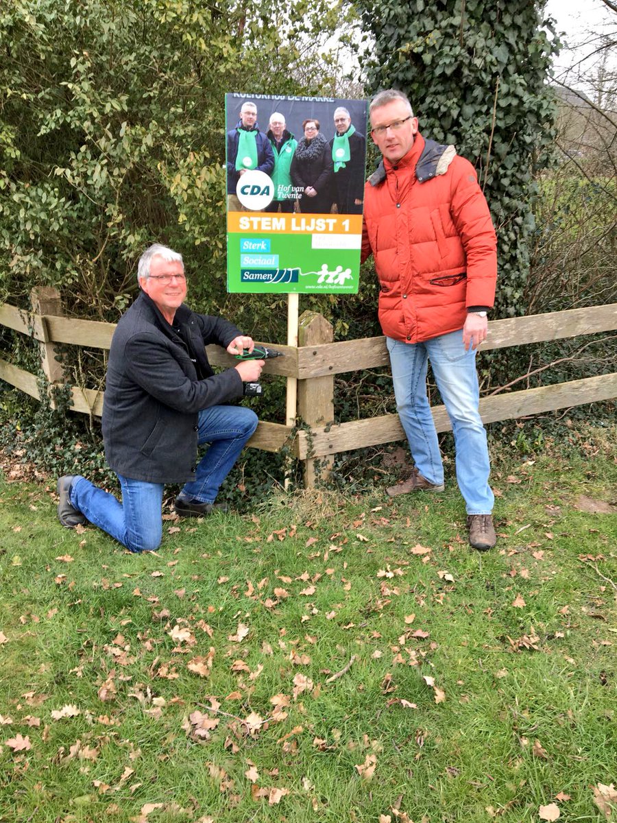 +1Ze staan er weer! De enthousiaste mannen van @CDAHofvanTwente plaatsten gisteren de CDA-borden in onze tuin voor de gemeenteraadsverkiezingen 21 maart. #GR2018