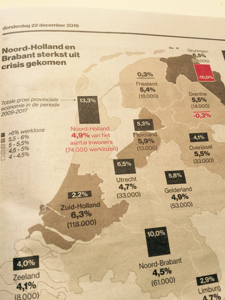 Brabant&Noord-Holland best uit de crisis gekomen; BBP sinds 2009 @ING Aldus kaartje uit Brabants Dagblad #CDA