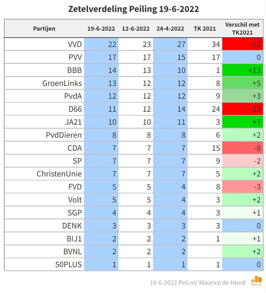 WNL op zondag geeft er geen aandacht meer aan. Daarom: bij deze. BBB is de derde partij van het land en 2x zo groot als het CDA. Opgeteld staat de coalitie op 47 zetels. Nieuwe verkiezingen zullen ten koste van alles vermeden worden.