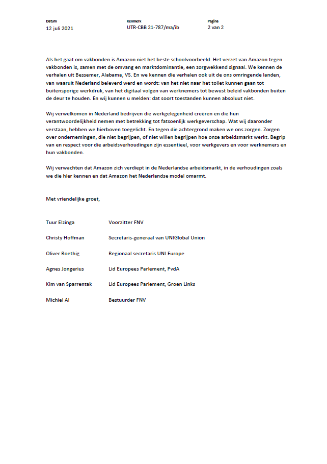 Met @FNV @UNI_Europa en @kimvsparrentak roepen wij Amazon op om werknemersrechten te respecteren in Nederland!