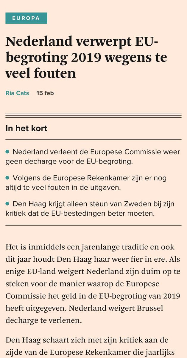 Terecht dat Nederland de EU-begroting 2019 niet goedkeurt. Een foutenpercentage van 2,7% blijft te hoog. Nu de EU-uitgaven hoogterecords breken, is correcte besteding van groot belang!