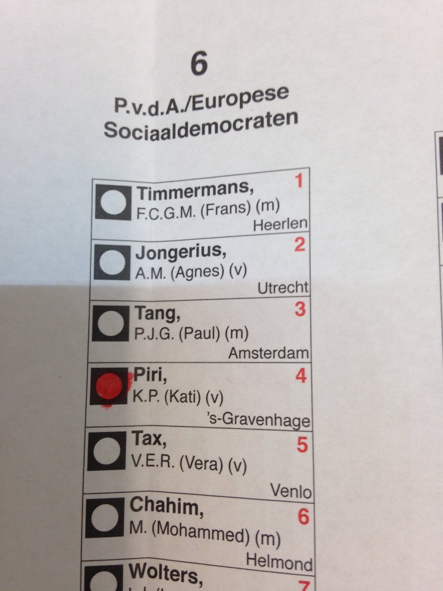 Net gestemd op de Europarlementariër die op mij veel indruk maakte en van wie ik hoop en verwacht dat ze met voorkeursstemmen terugkomt. Hup @KatiPiri #EP2019