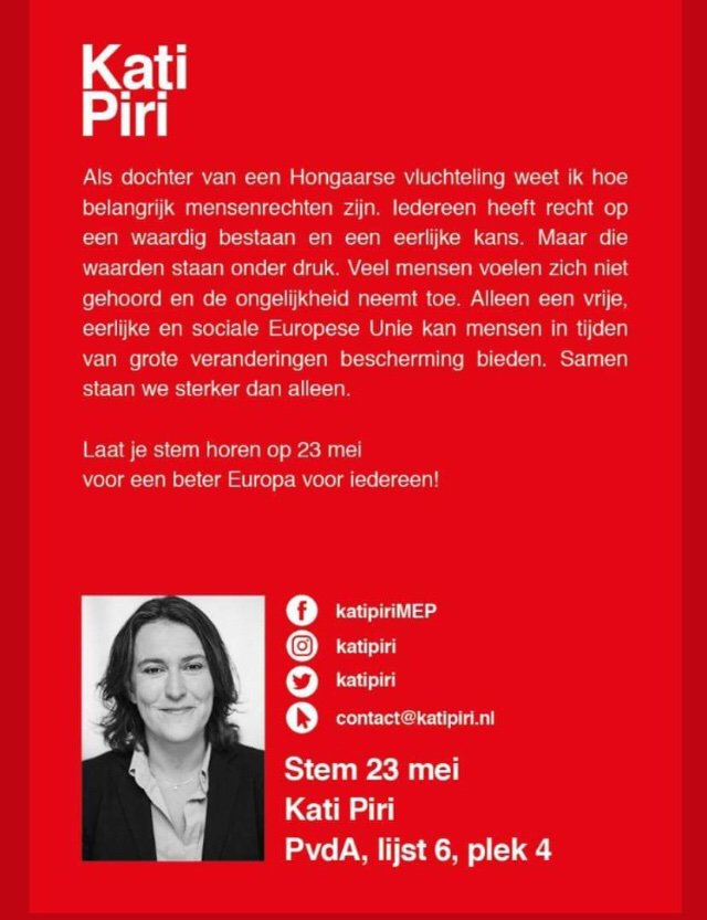 Ik loop niet graag te koop met mijn stemgedrag. Desondanks maak ik vandaag een uitzondering voor @KatiPiri. Ik heb met mijn eigen ogen gezien hoe zij zich onvermoeibaar heeft ingezet voor een sterk Europa, mensenrechten en gelijkwaardigheid. Zij is zoals politici horen te zijn.